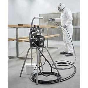 The spraying equipment are available with stainless steel or aluminum pumping to suck the product directly from the original drum to filter and send it to the gun in the right quantity and working pressure.