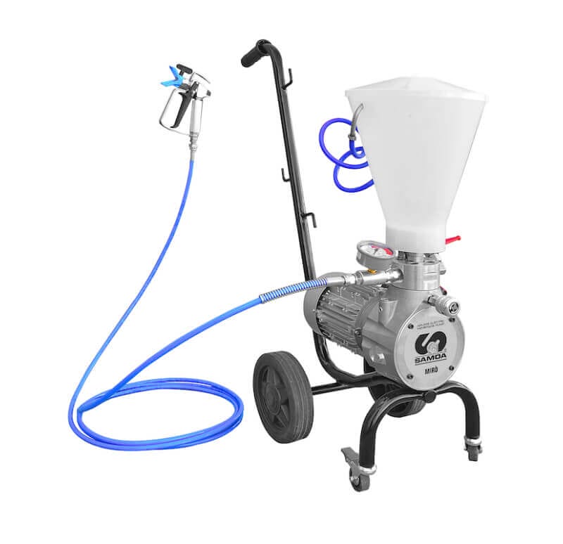 Efficient and reliable airless electric diaphragm spray package ready to use that assures constant performance to satisfy all psryaing requirements into the construction market.