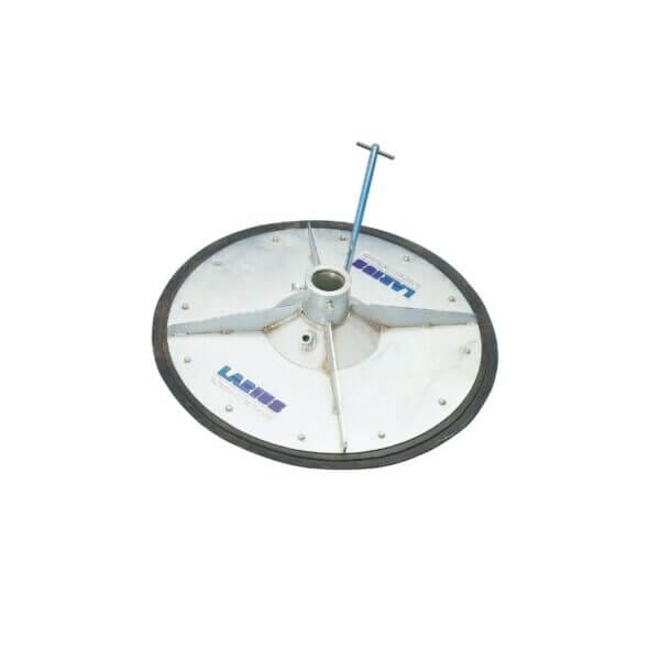 Piatti prementi per fusti da 200 l (Ø interno 572 mm) disponibili in diversi materiali: acciaio galvanizzato, acciaio inox o alluminio.
